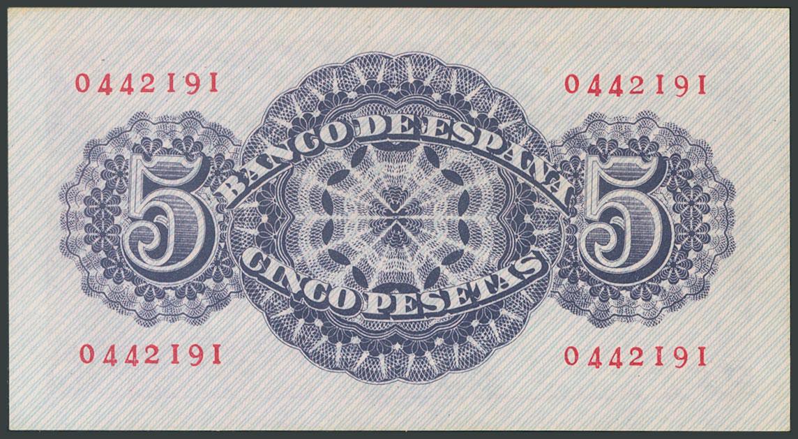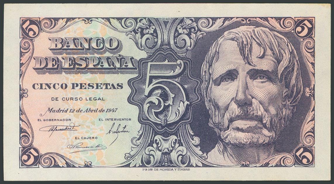 English 5 Pesetas. April 12, 1947. Without series. (Edifil 2017: 454). Little dots of time. AU.