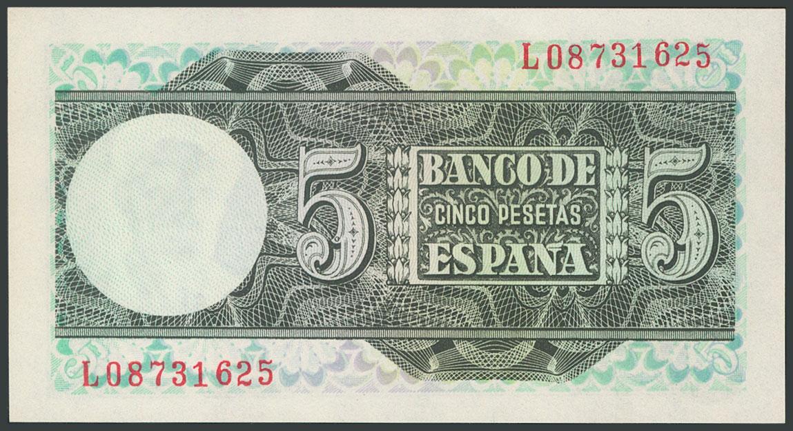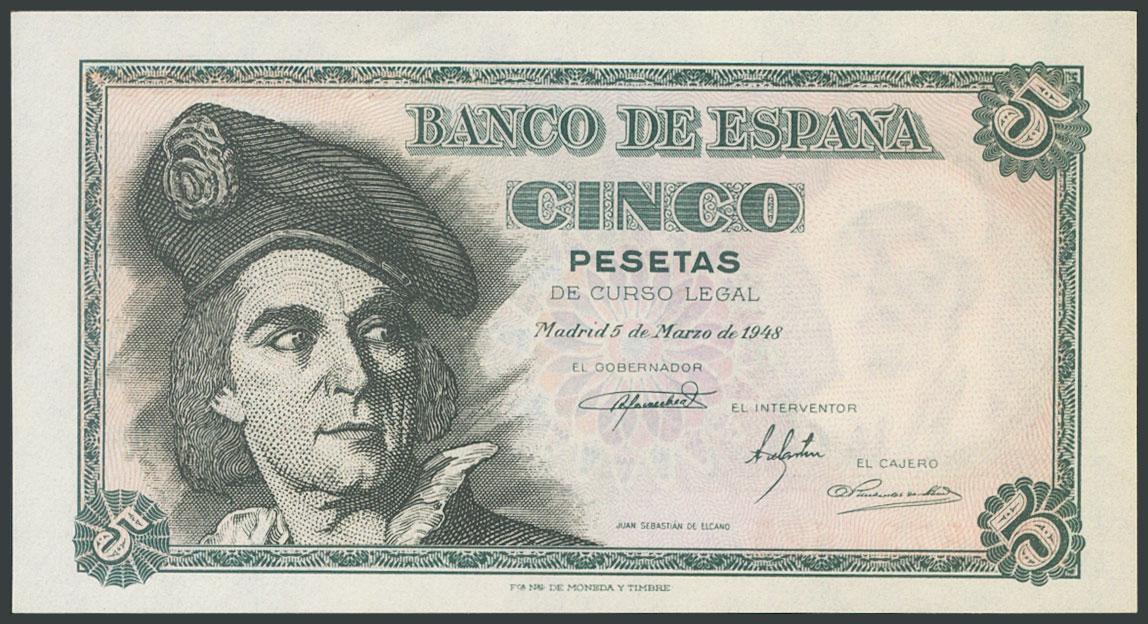 5 Pesetas. March 5, 1948. Series L. (Edifil 2017: 455a). Original sizing. UNC.