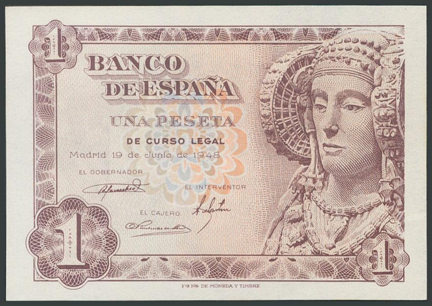 1 peseta. June 19, 1948. Without series. (Edifil 2017: 457). Original sizing. UNC.