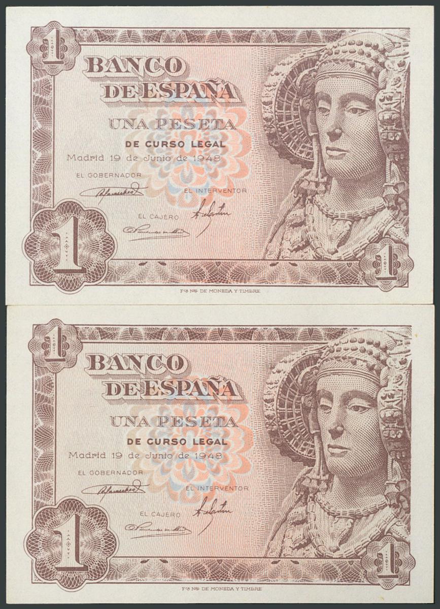 1 peseta. June 19, 1948. Correlative couple. Series H. (Edifil 2017: 457a). UNC.