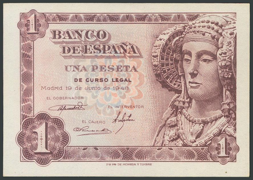 1 peseta. June 19, 1948. Series J. (Edifil 2017: 457a). Original sizing. UNC.