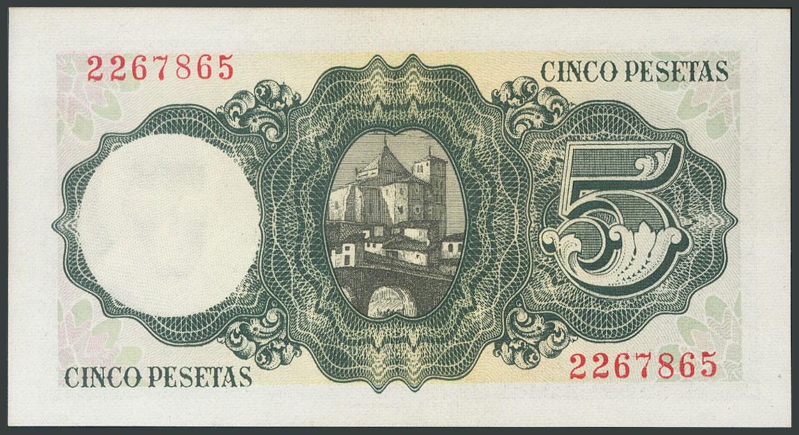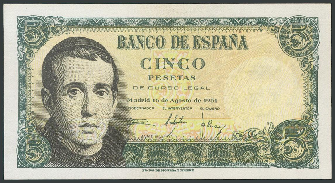 5 Pesetas. August 16, 1951. Without series. (Edifil 2017: 459). Original sizing. UNC.