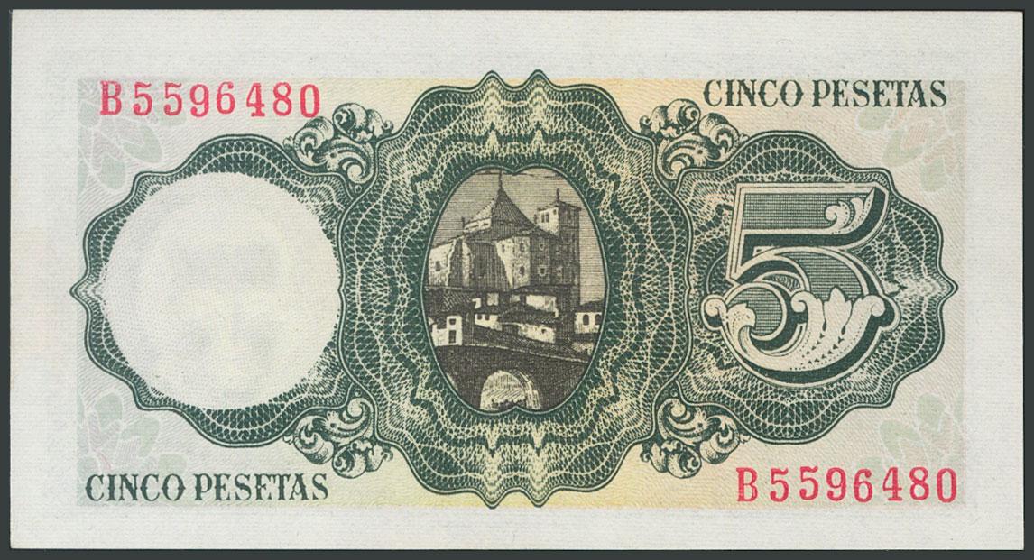 5 Pesetas. August 16, 1937. Series B. (Edifil 2017: 459a). UNC.