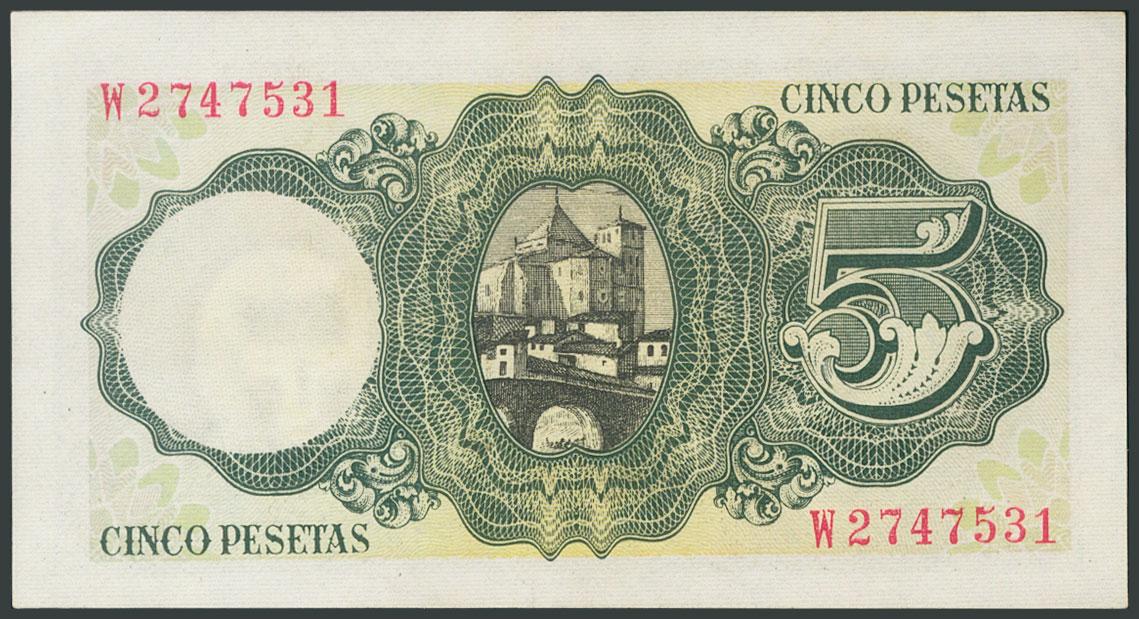 5 Pesetas. August 16, 1951. Series W. (Edifil 2017: 459a). Original sizing. AU.