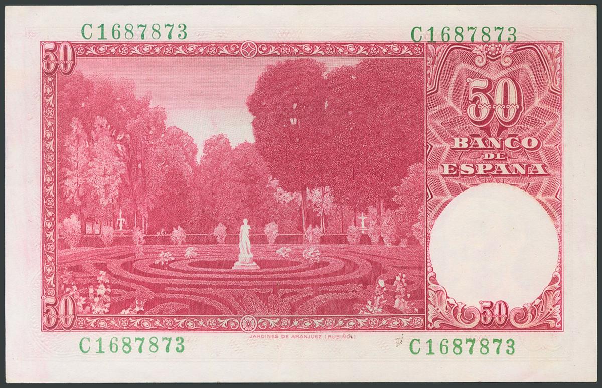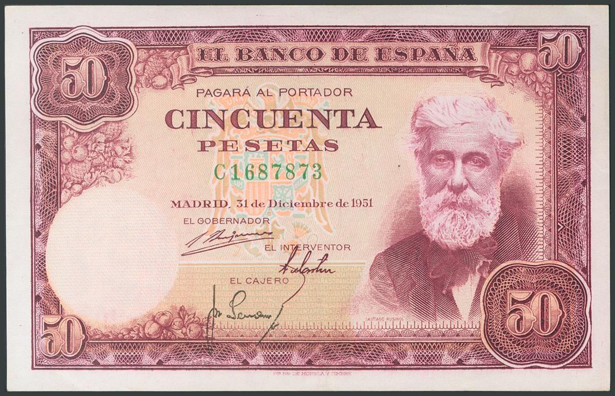 50 Pesetas. December 31, 1951. Series C, last series issued. (Edifil 2017: 462a). Original sizing. AU.
