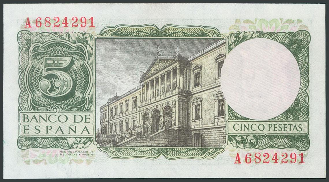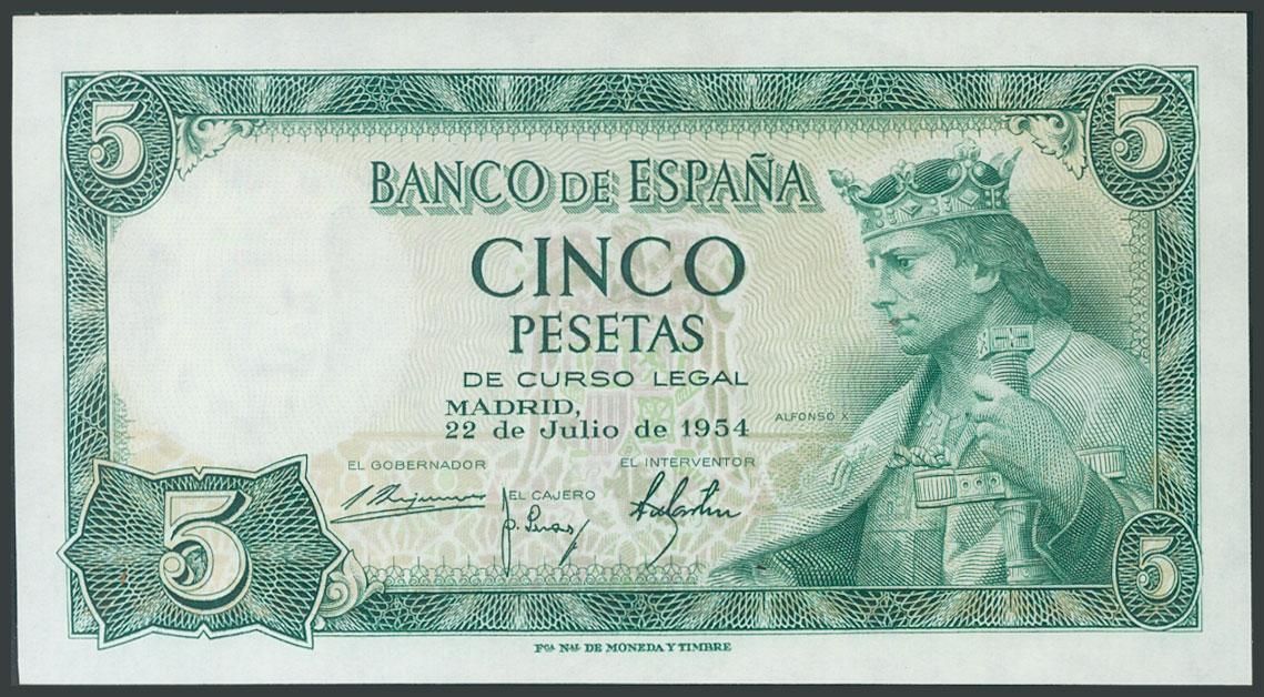 5 Pesetas. July 22, 1954. Series A. (Edifil 2017: 466a). Original sizing. UNC.