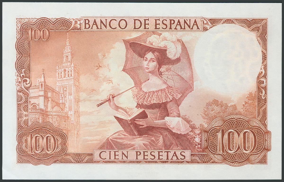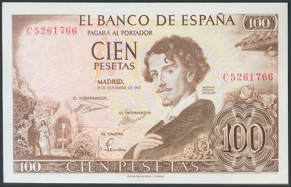100 Pesetas. November 19, 1965. Series C. (Edifil 2017: 470a). Original sizing. UNC.