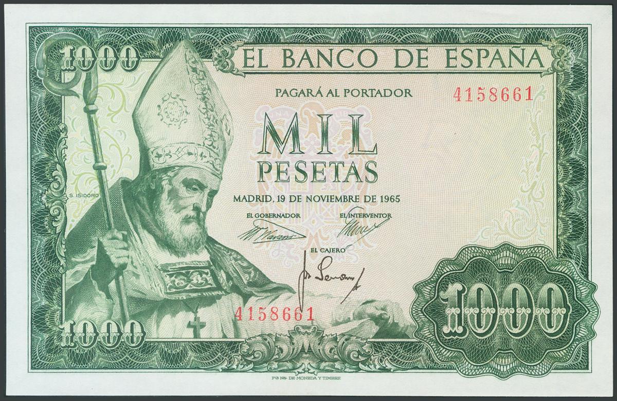 English 1000 Pesetas. November 19, 1965. Without series. (Edifil 2017: 471). Original sizing. UNC.