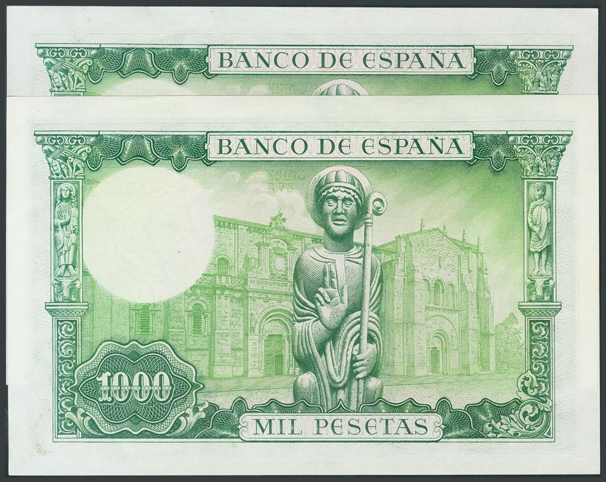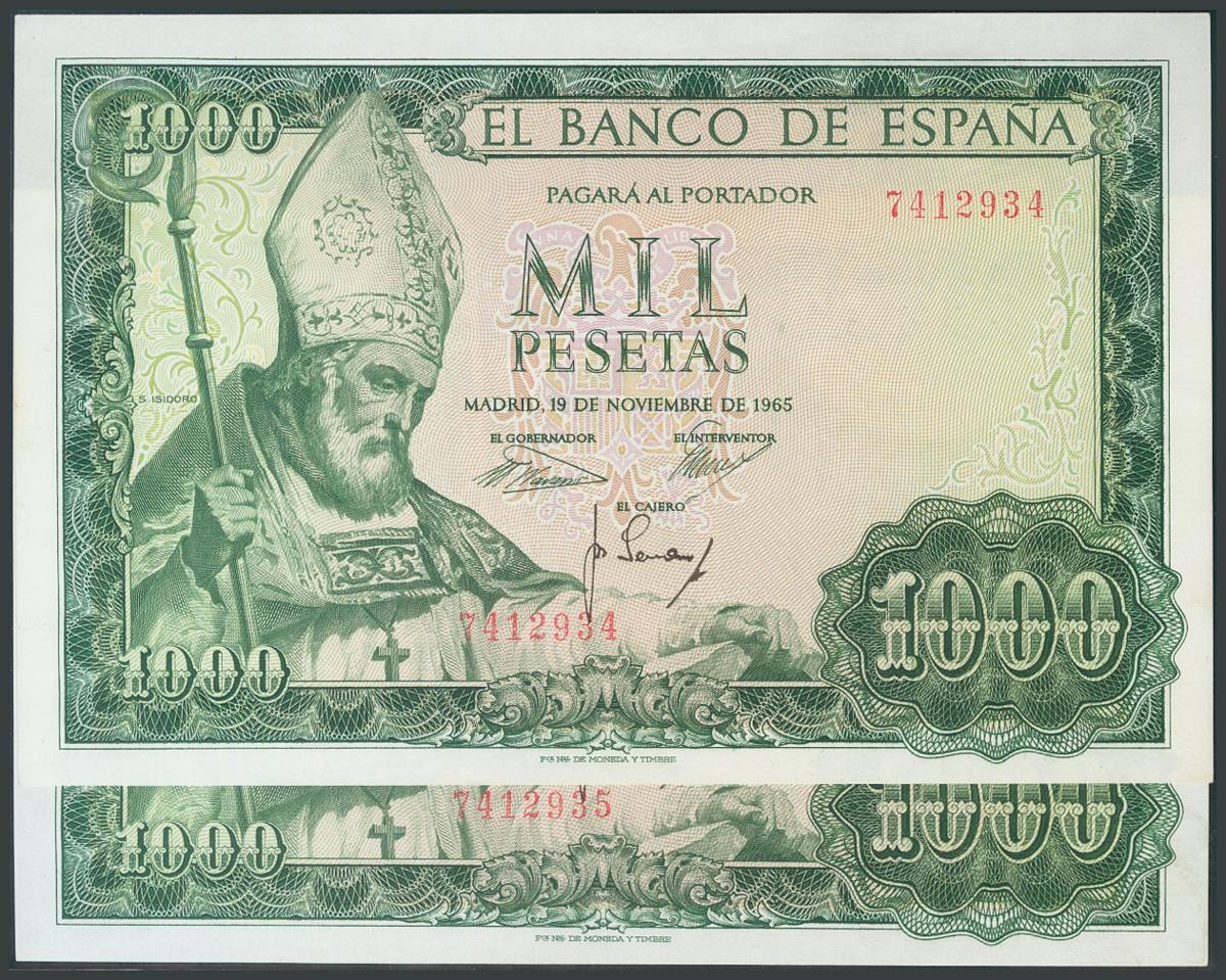 1000 Pesetas. November 19, 1965. Correlative couple. No serie. (Edifil 2017: 471). It keeps all its original size. UNC.