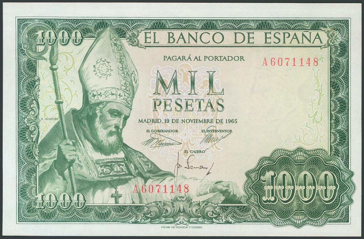 1000 Pesetas. November 19, 1965. Series A. (Edifil 2017: 471a). Original sizing. UNC.