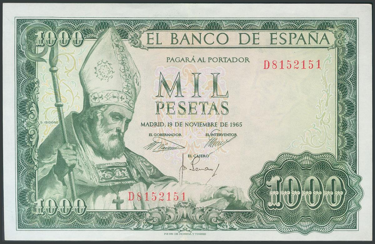 1000 Pesetas. November 19, 1965. Series D. (Edifil 2017: 471b). Original sizing. AU.