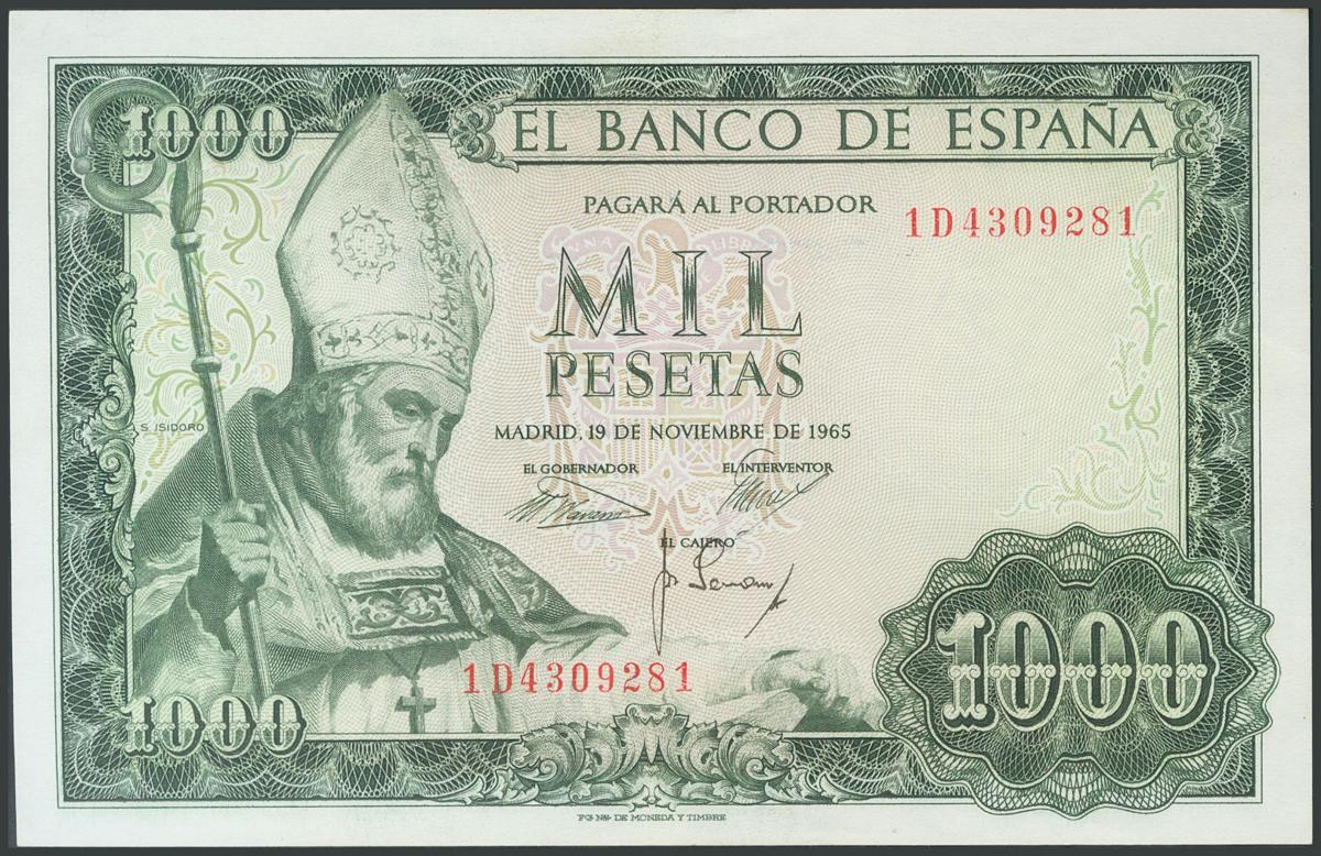 100 Pesetas. November 19, 1965. Series 1D. (Edifil 2017: 471b). Original sizing. UNC.