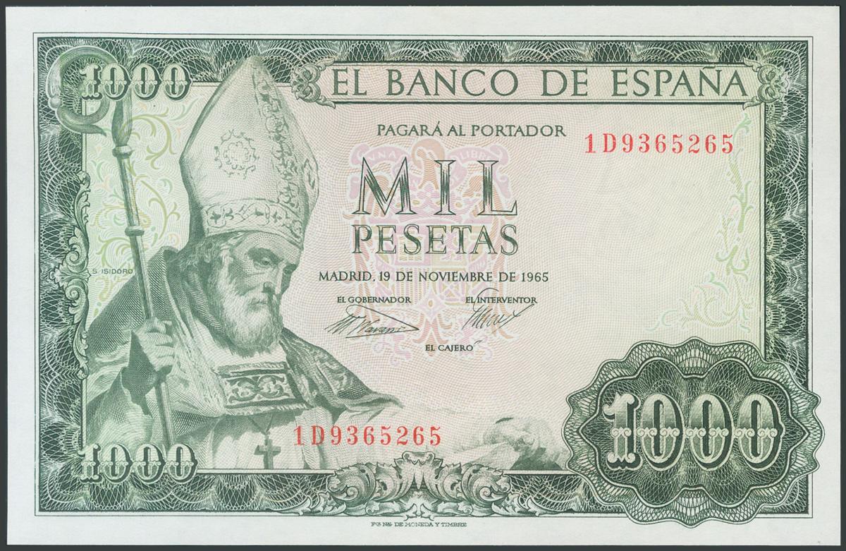 1000 Pesetas. November 19, 1965. Series 1D and without the cashier's signature. (Edifil 2017: 471b). UNC.