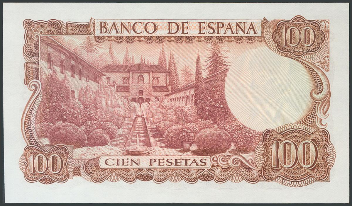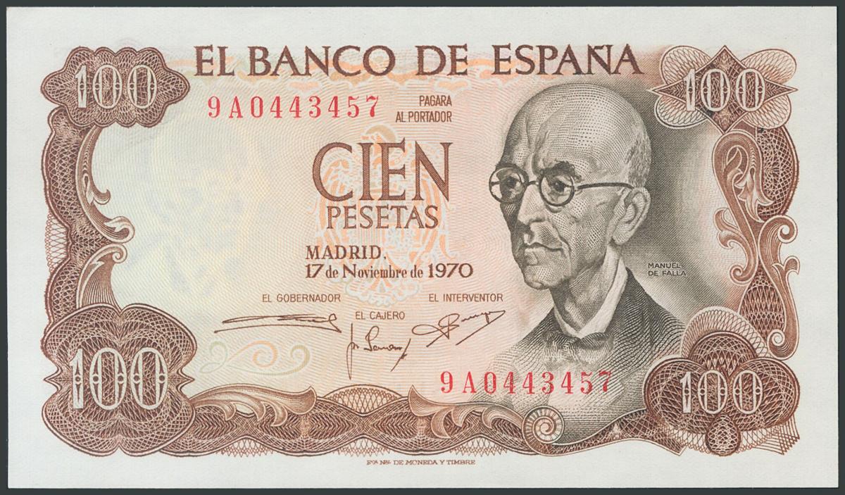 100 Pesetas. November 17, 1970. Series 9A, special numbering. (Edifil 2017: 472d). UNC.