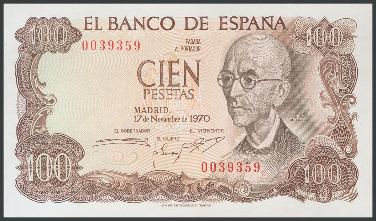 100 Pesetas. November 17, 1970. Without series and numbering starting with double 0. (Edifil 2017: 472). UNC.