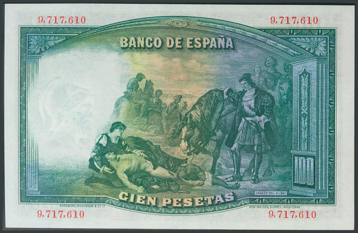 100 Pesetas. April 25, 1931. Without series. (Edifil 2017: 360). Original sizing. UNC.