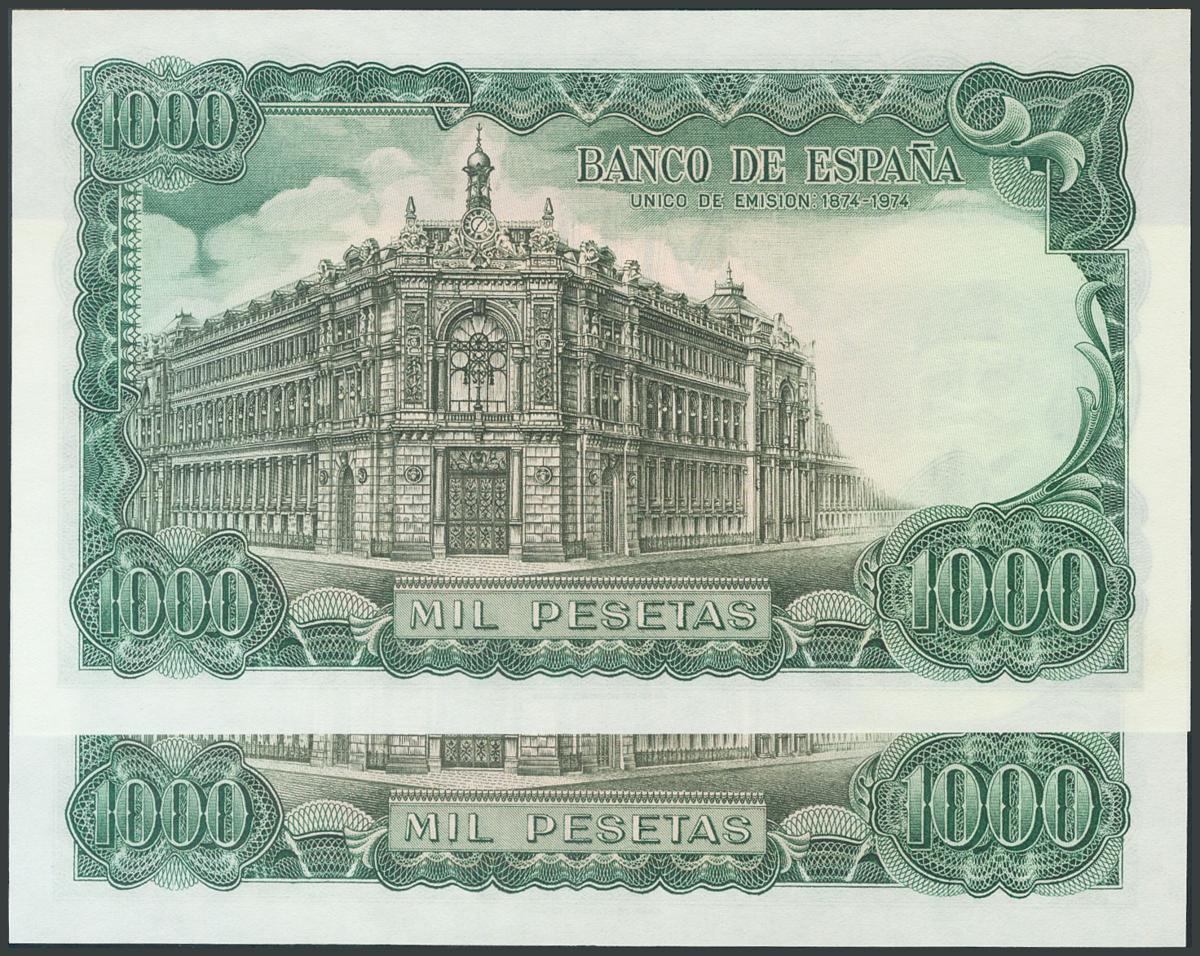 1000 Pesetas. September 17, 1971. Correlative pair. 5P series. (Edifil 2017: 474c). Original sizing. UNC.