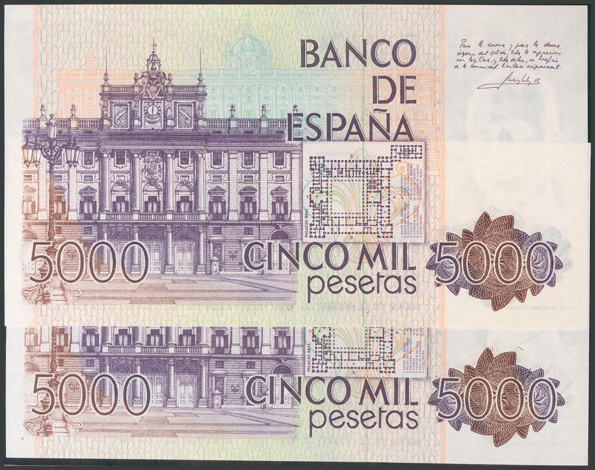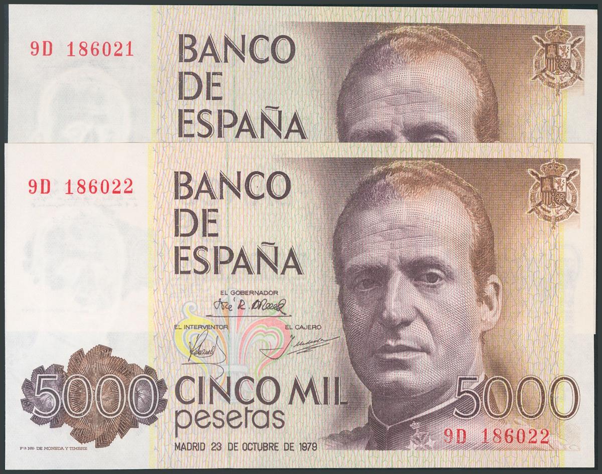 5000 Pesetas. October 23, 1979. Correlative couple. 9D series, special numbering. (Edifil 2017: 478b). UNC.