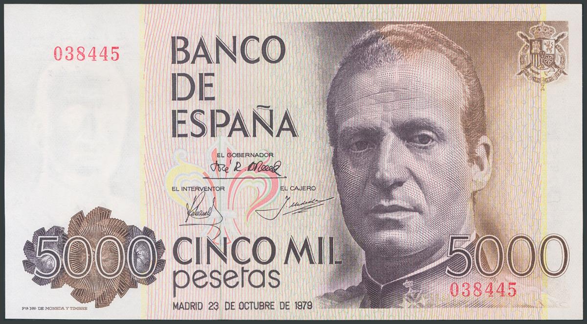 5000 Pesetas. October 23, 1979. No series and low numbering. (Edifil 2017: 478). UNC.