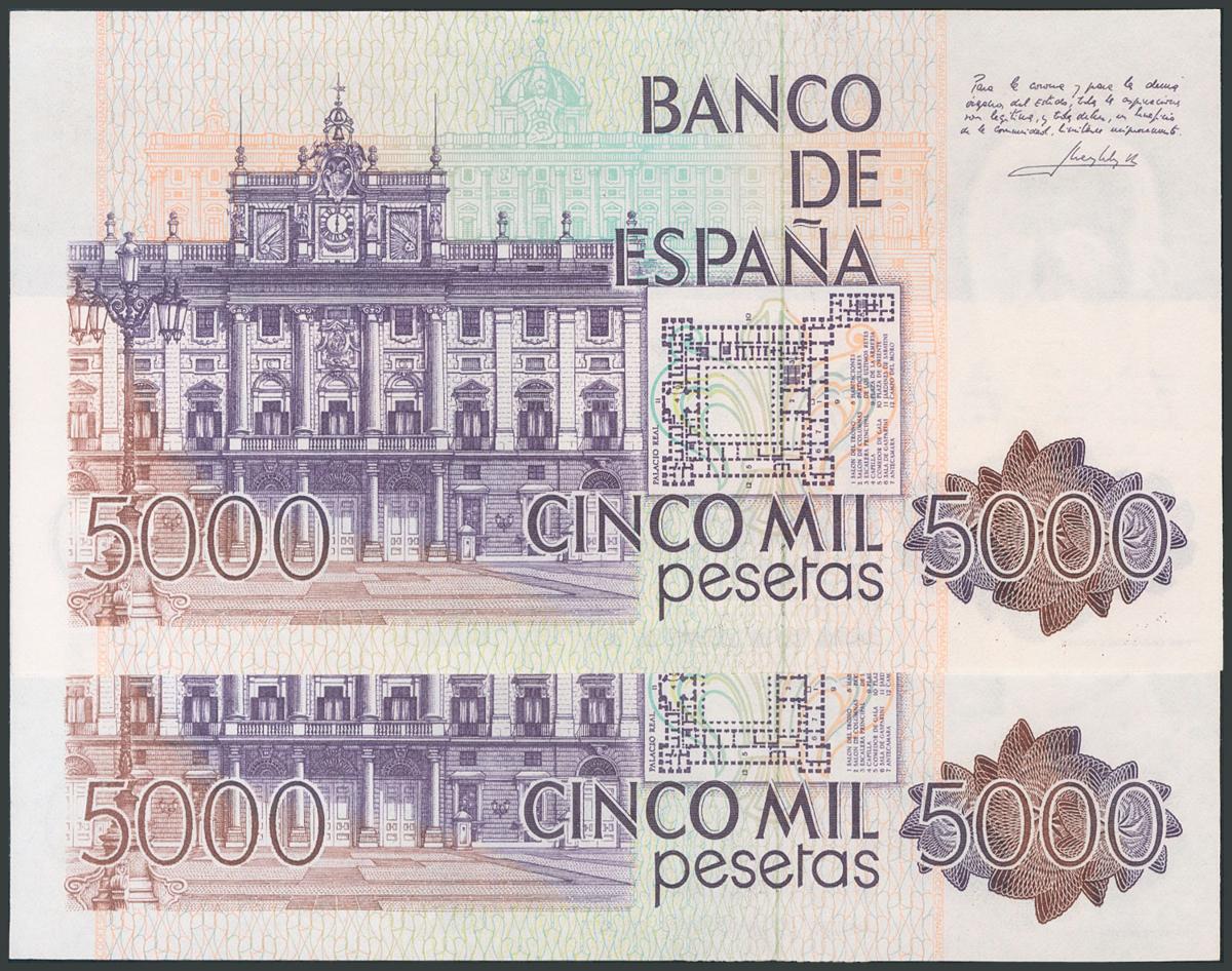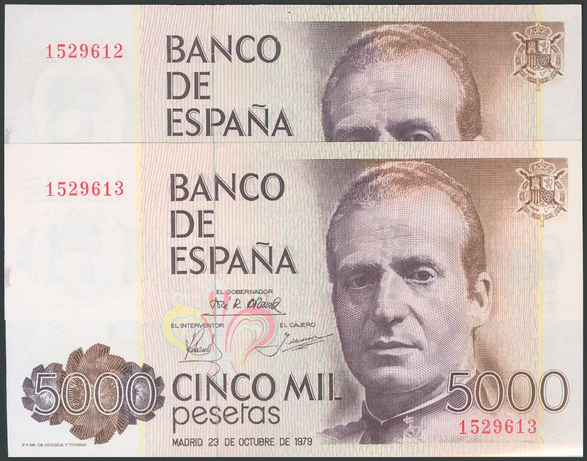 5000 Pesetas. October 23, 1979. Correlative couple. No serie. (Edifil 2017: 478). UNC.