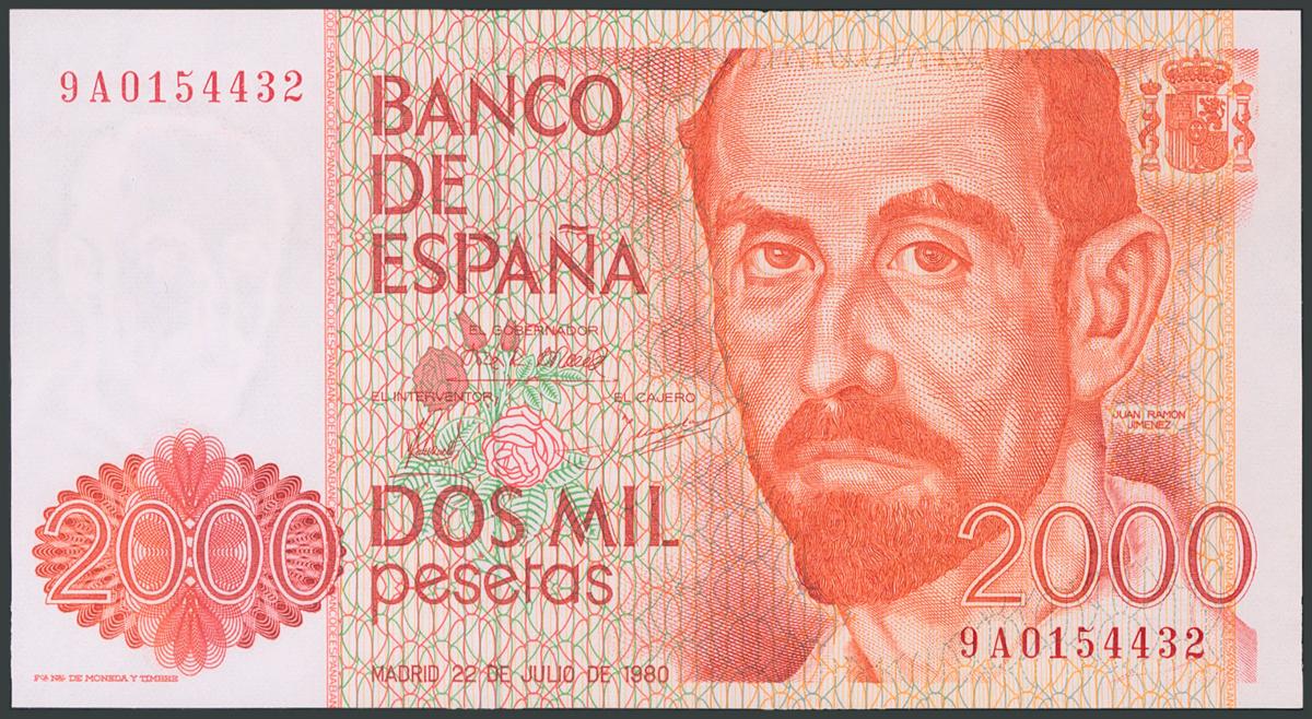 2000 Pesetas. July 22, 1980. Series 9A. (Edifil 2017: 479b). Unusual UNC.