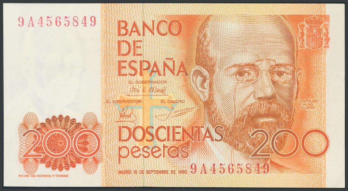 200 pesetas. September 16, 1980. Series 9A, special numbering. (Edifil 2017: 480b). UNC.