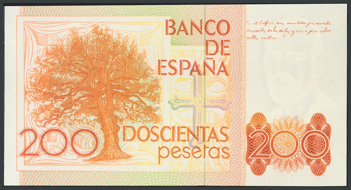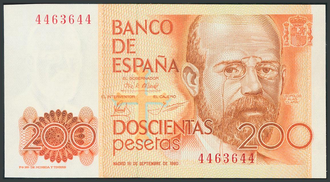 200 pesetas. September 16, 1980. Without series and capicúa numbering. (Edifil 2017: 480). UNC.