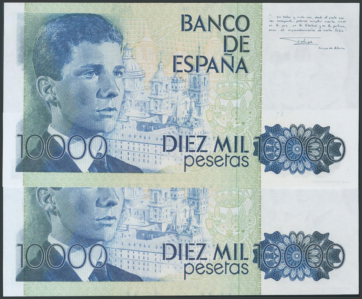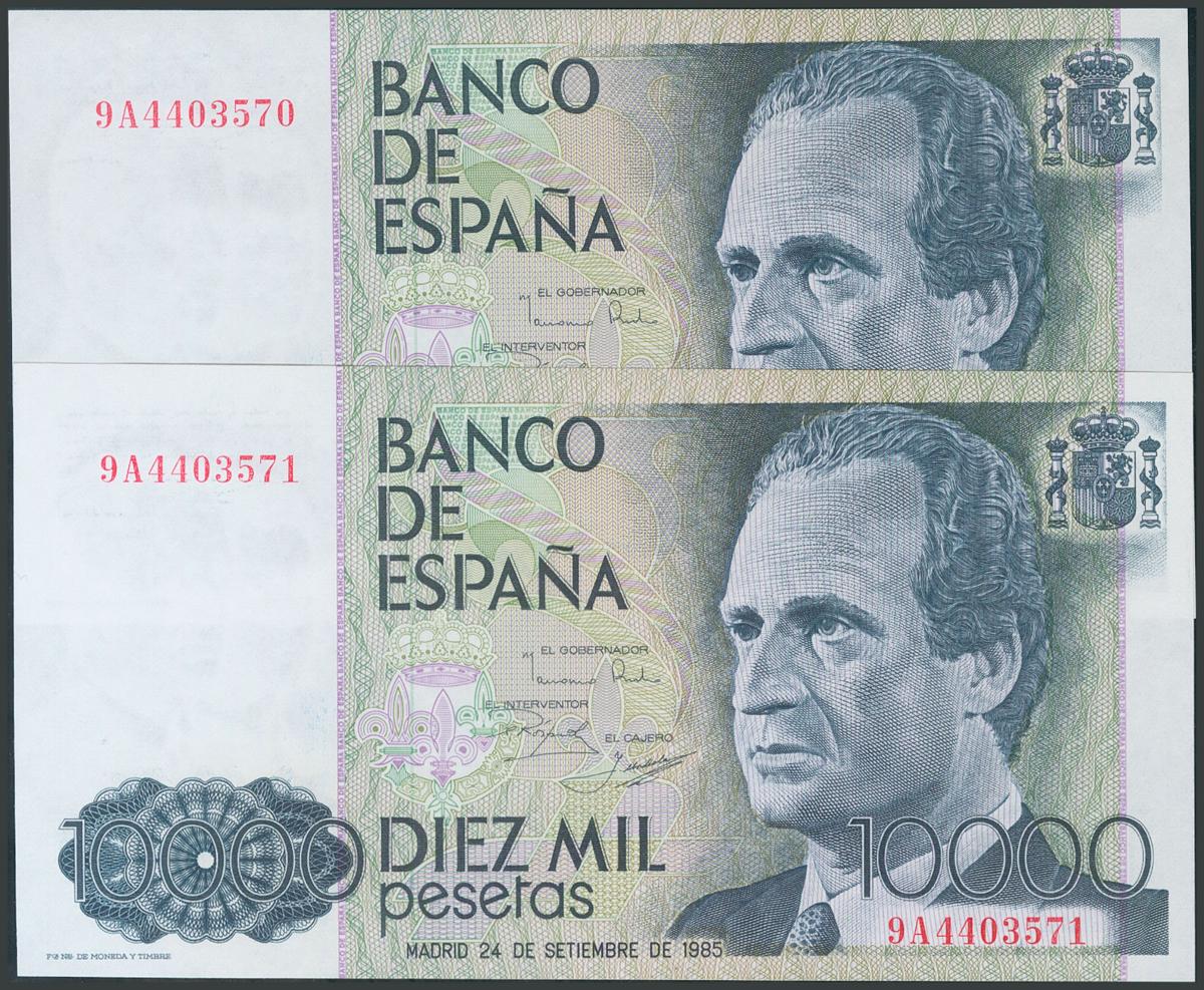 10000 Pesetas. September 24, 1985. Correlative pair. Series 9A, special numbering. (Edifil 2017: 481b). UNC.