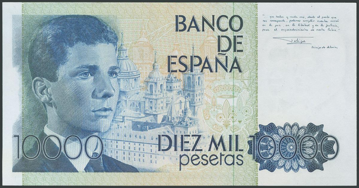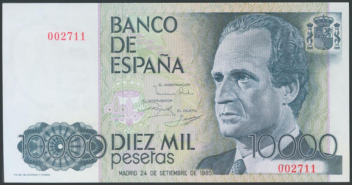 10000 Pesetas. September 24, 1985. No series and very low numbering. (Edifil 2017: 481). UNC.