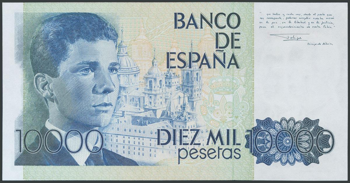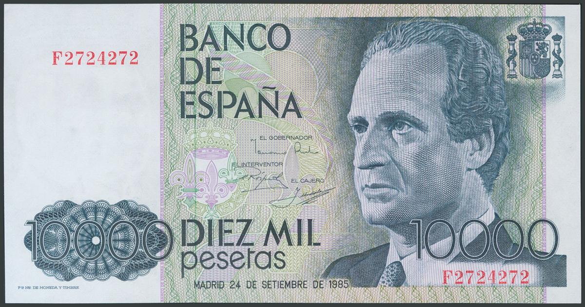 10000 Pesetas. September 24, 1985. Series F and capicúa numbering. (Edifil 2017: 481a). UNC.