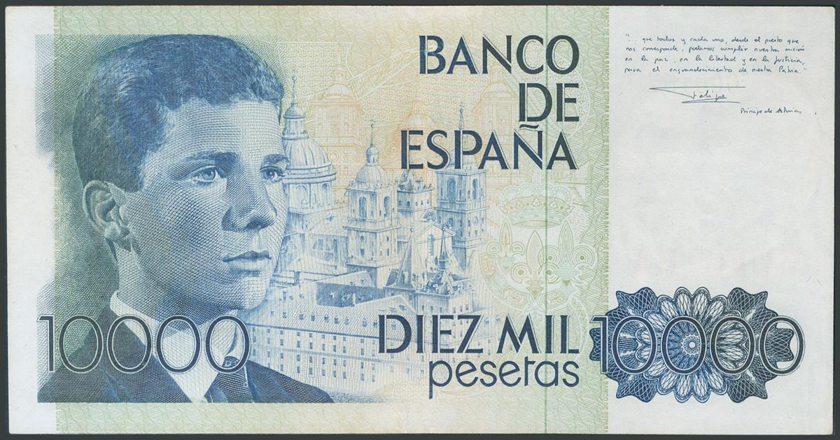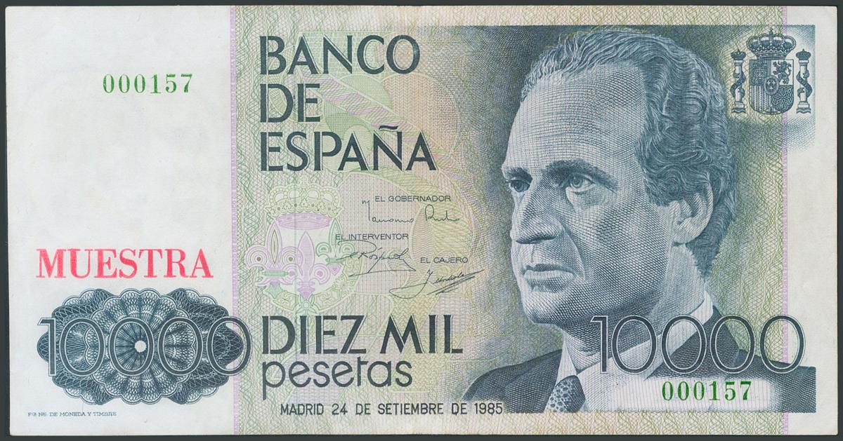 10000 Pesetas. September 24, 1985. Without series. Sample and very low numbering 000157, in green. (Edifil 2017: 481). AU.