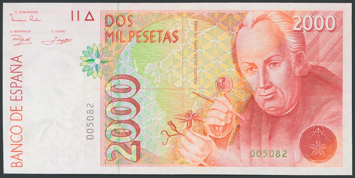 2000 Pesetas. April 24, 1992. No series and low numbering. (Edifil 2017: 482). UNC.