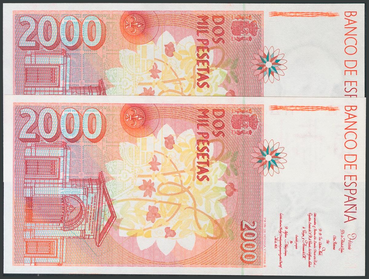 2000 Pesetas. April 24, 1992. Correlative couple. No serie. (Edifil 2017: 482). UNC.
