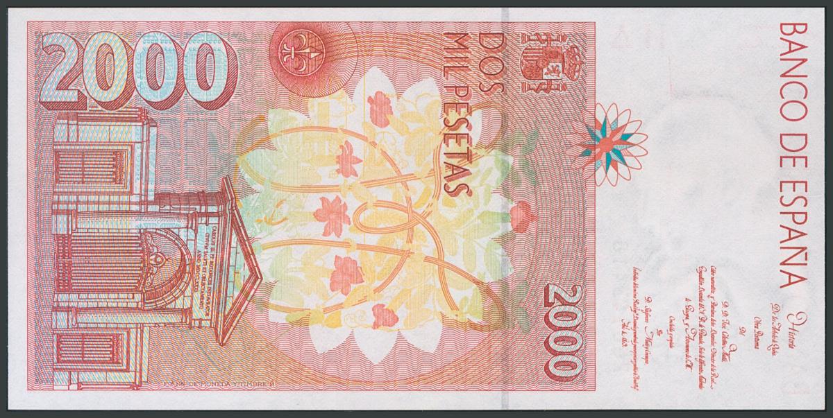 2000 Pesetas. April 24, 1992. Series 2G and capicúa numbering. (Edifil 2017: 482a). UNC.