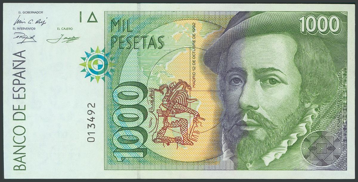 1000 Pesetas. October 12, 1992. No series and low numbering. (Edifil 2017: 483). UNC.