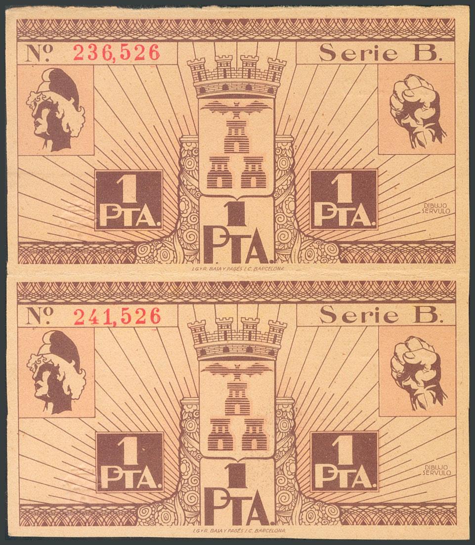 ALBACETE. 1 peseta. November 8, 1937. Series B and without guillotine, both. (González: 132). UNC.