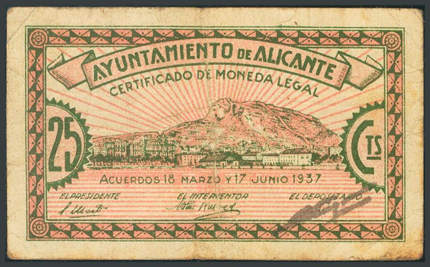 ALICANTE. 25 cents. June 30, 1938. Series C. (González: 508). FR2.