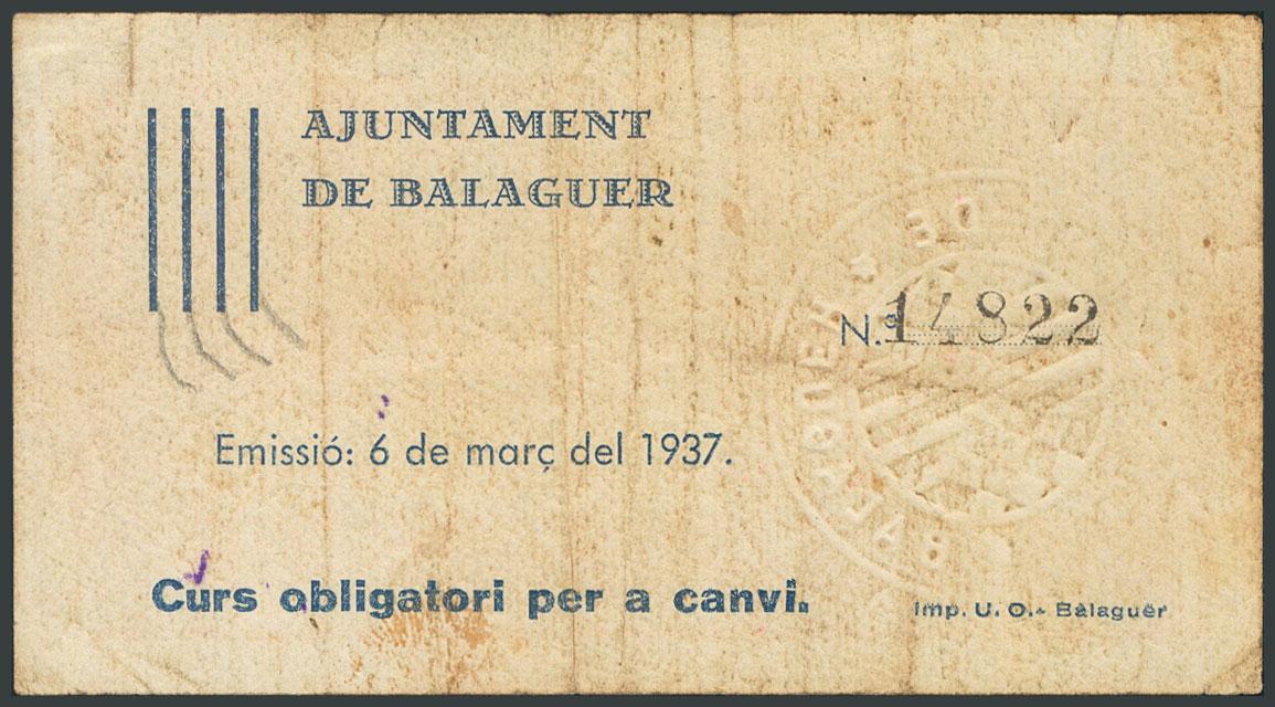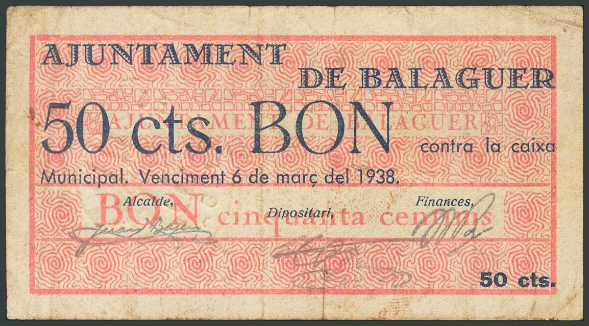 English BALAGUER (LERIDA). 50 Cents. March 6, 1937. (González: 6484). F.