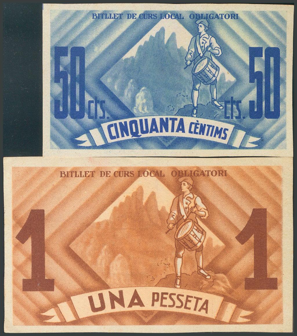 BRUCH (BARCELONA). 50 Cents and 1 Peseta. September 1937. Unnumbered. (González: 7207, 7208). UNC.