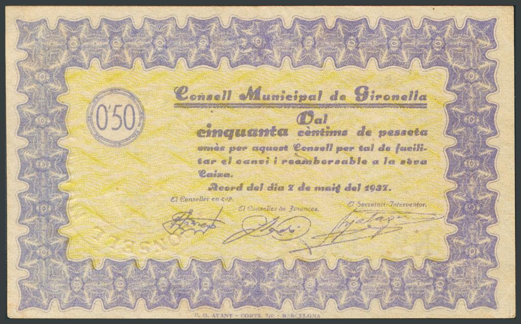 GIRONELLA (BARCELONA). 50 Cents. May 7, 1937. (González: 8044). VF.