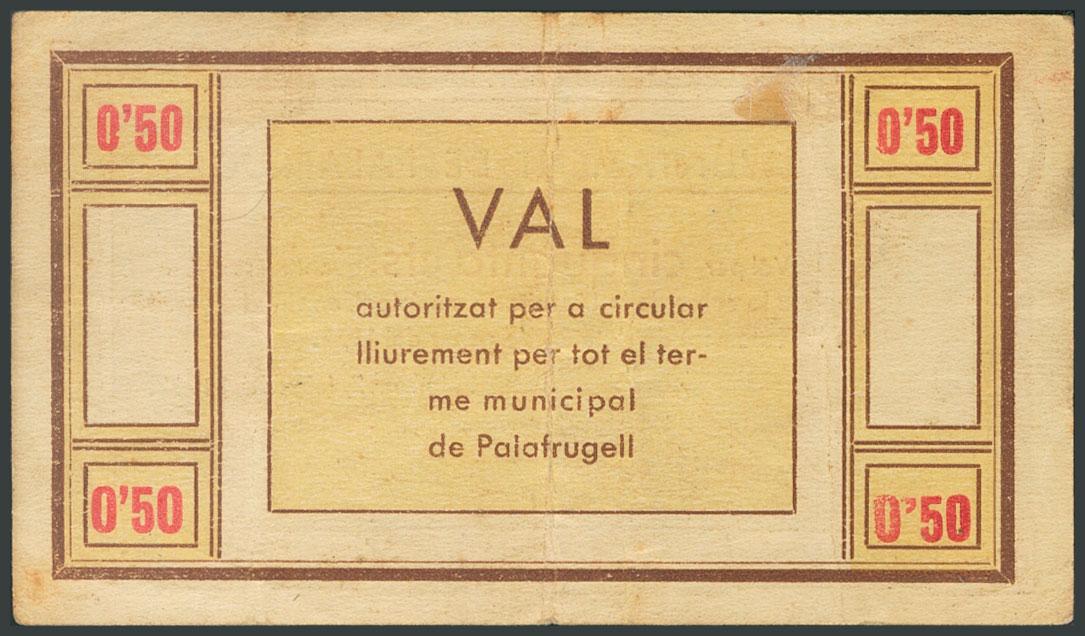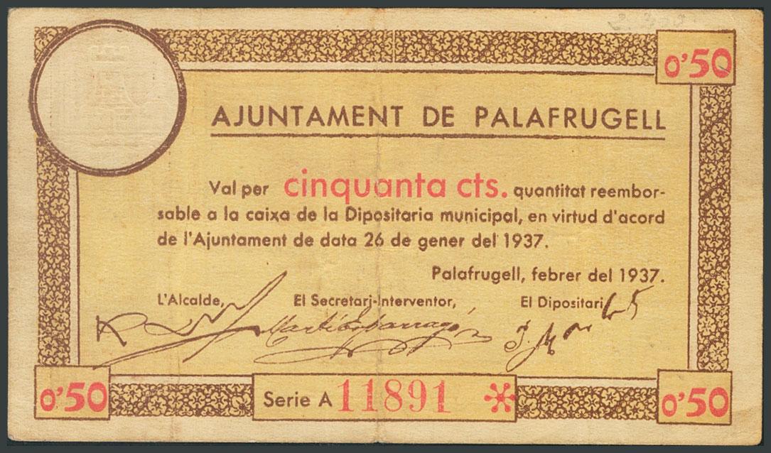 PALAFRUGELL (GERONA). 50 Cents. February 1937. Series A. (González: 9071). VF.