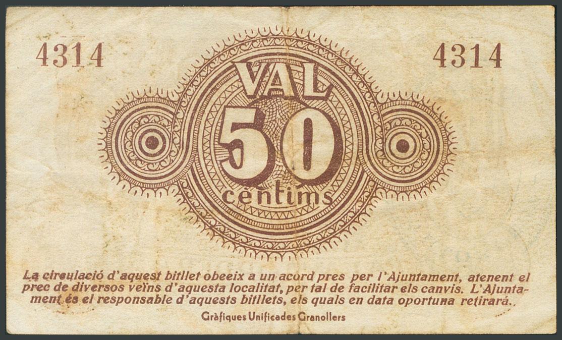 PALAUTORDERA (BARCELONA). 50 Cents. (1938ca). (González: 9131). VF.