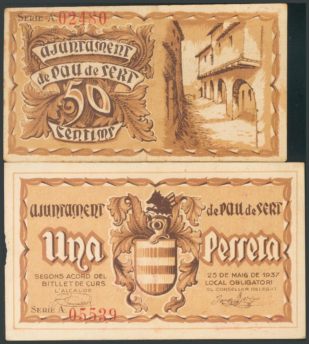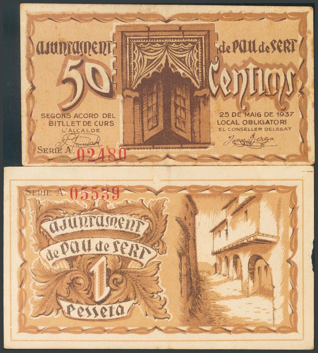 PAU DE SERT (GERONA). 50 Cents. May 25, 1937. Series A, both. (González: 9171/72). Unusual complete series. AU/ AU.