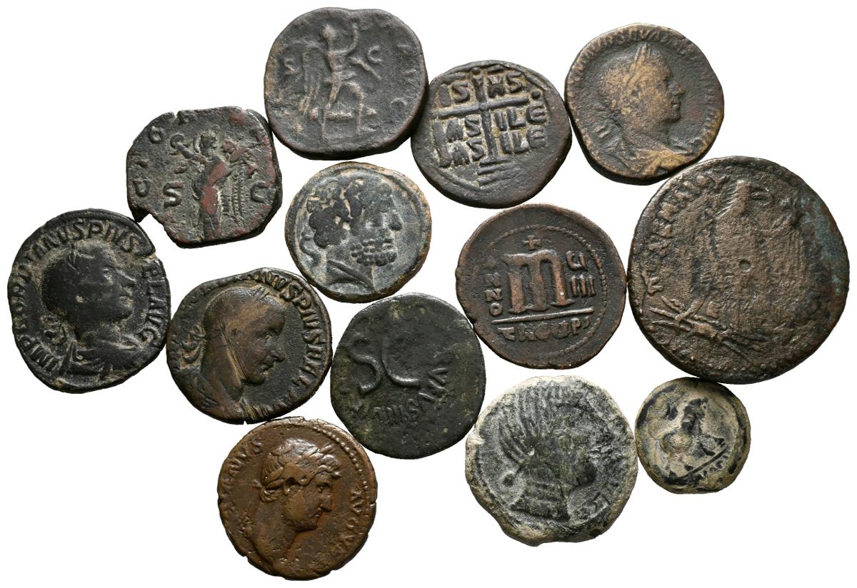 English ANCIENT TIME. Lot composed of 13 bronzes from Ancient Hispania to the Byzantine Empire, highlighting a beautiful piece by Ptolemy VIII, Ace of Hadrian and a Semis by Bolscan and another by Obulco. TO EXAMINE.