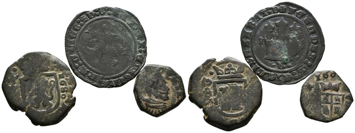 SPANISH MONARCHY. Nice set of 3 coppers minted during the reigns of the Catholic Monarchs, Felipe IV and Carlos II. Different mints including the last minted in Trujillo by Carlos II. Different states of conservation. TO EXAMINE.