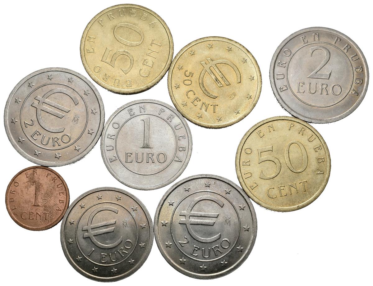 Set of 9 Proof coins known as Euros de Churriana. It includes the values of 1 and 50 cents and 1 and 2 euros. TO EXAMINE