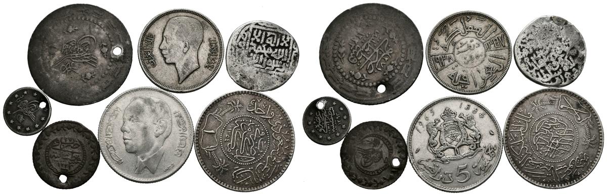 FOREIGN CURRENCIES. Set of 7 Arab silver coins from different countries, modules as well as state of preservation. TO EXAMINE.