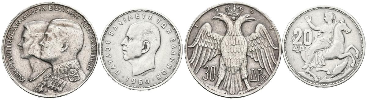 GREECE. Nice set consisting of 2 silver coins of 20 and 30 Drachmas from 1960 and 1964. Different states of conservation. TO EXAMINE.