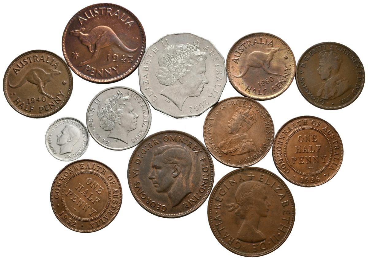 English FOREIGN CURRENCIES. Nice set consisting of 12 Australian coins of various formats, values and materials with dates between 1921 and 2002. No repeating pieces. TO EXAMINE