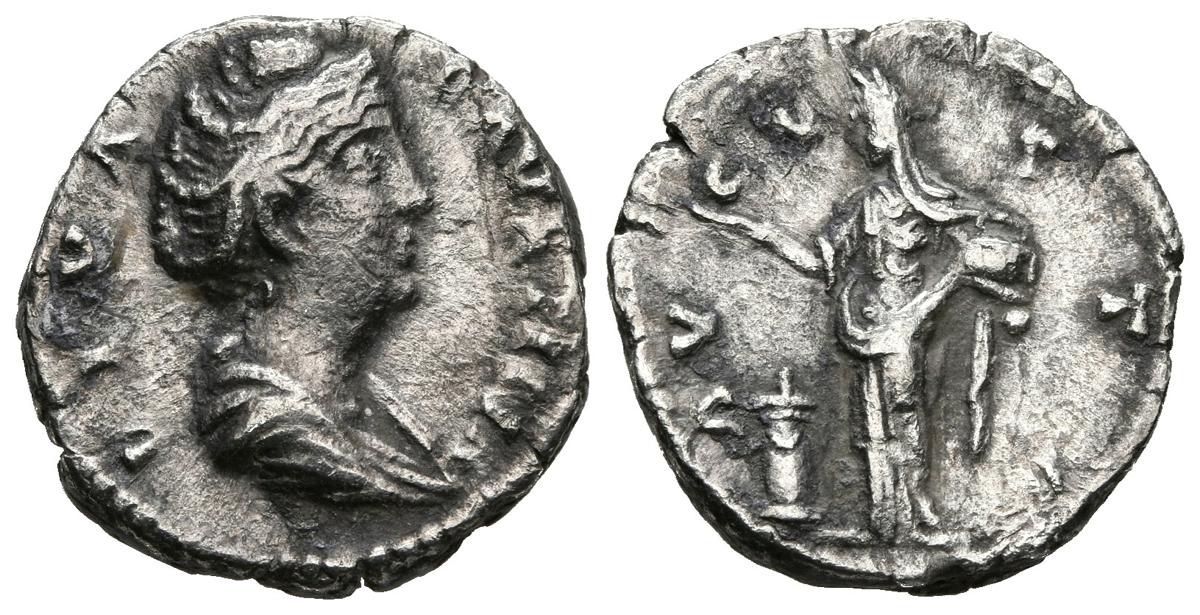 FAUSTINA I. Denarius (Ar. 2.30g / 17mm). 141 AD Rome. (RIC 394a). Anv: draped bust of Faustina I on the right, around legend: DIVA AVG FAVSTINA. Rev: Pietas, veiled, standing to the left, dropping incense on the altar and holding the box, around legend: AVGVSTA. F.